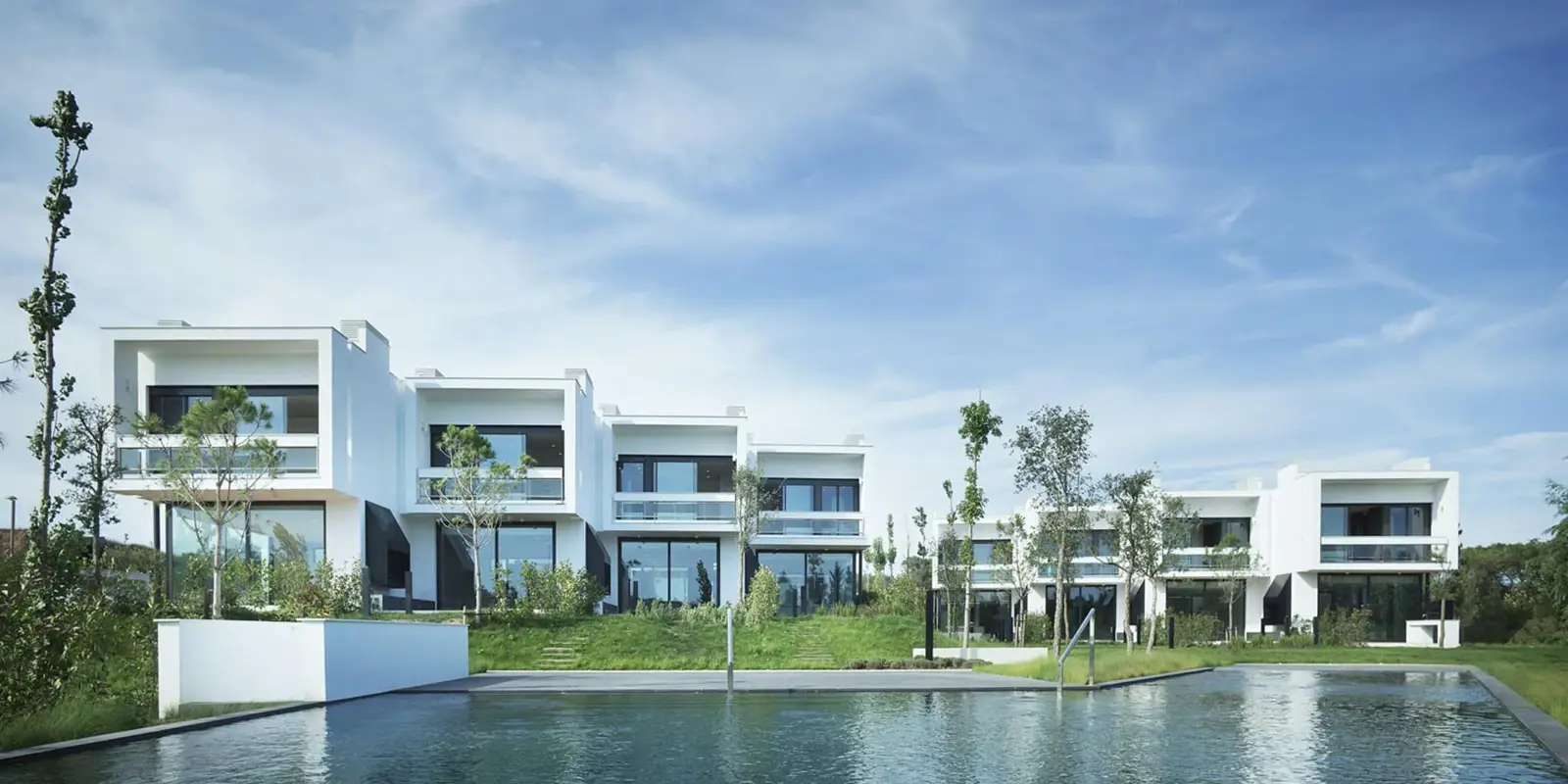Erleben Sie die Eleganz unserer luxuriösen Doppelvillen im Camiral, a Quinta do Lago Resort. Diese stilvollen Immobilien sind perfekt für das Familienleben und bieten sonnige Terrassen, Grillbereiche und Infinity-Pools. Genießen Sie atemberaubende Ausblicke auf sanft abfallende, landschaftlich gestaltete Rasenflächen und vieles mehr.