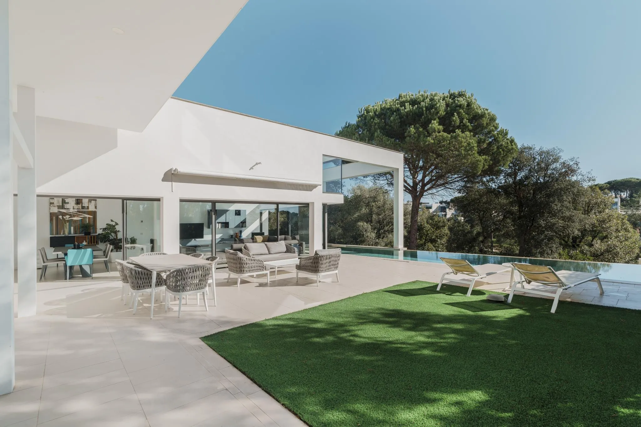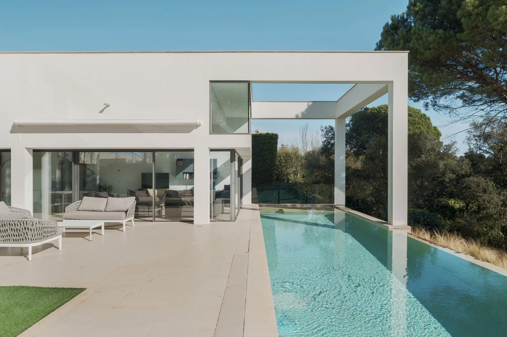 In einer ruhigen, von Natur umgebenen Lage von Camiral bietet La Selva 17 einen modernen und anspruchsvollen Lebensstil inmitten einer harmonischen Landschaft. Entworfen von Lagula Arquitectes, präsentiert sich dieses elegante, L-förmige Haus auf einem erhöhten Grundstück mit Blick auf das 15. Loch des Stadium Course – mit freiem Panoramablick über die katalanische Landschaft bis hin zu den fernen Bergen, die sich im Infinity-Pool spiegeln.