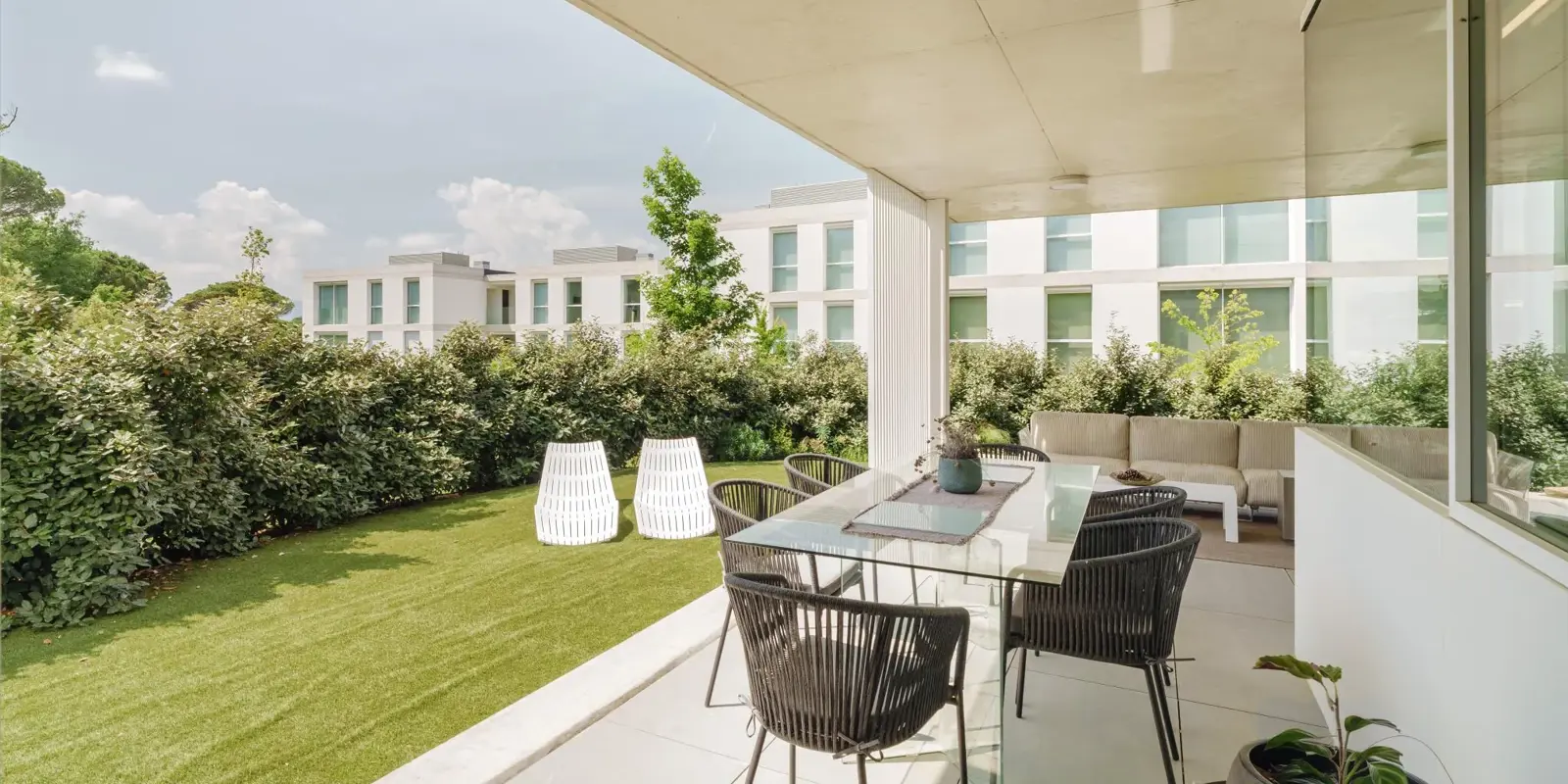 As a corner unit, the apartment enjoys enhanced privacy and natural light, with direct access to a spacious 124 m² private garden that wraps around the home. This outdoor haven, paired with a generous 43 m² covered terrace, invites a relaxed Mediterranean lifestyle where indoor and outdoor living flow seamlessly.