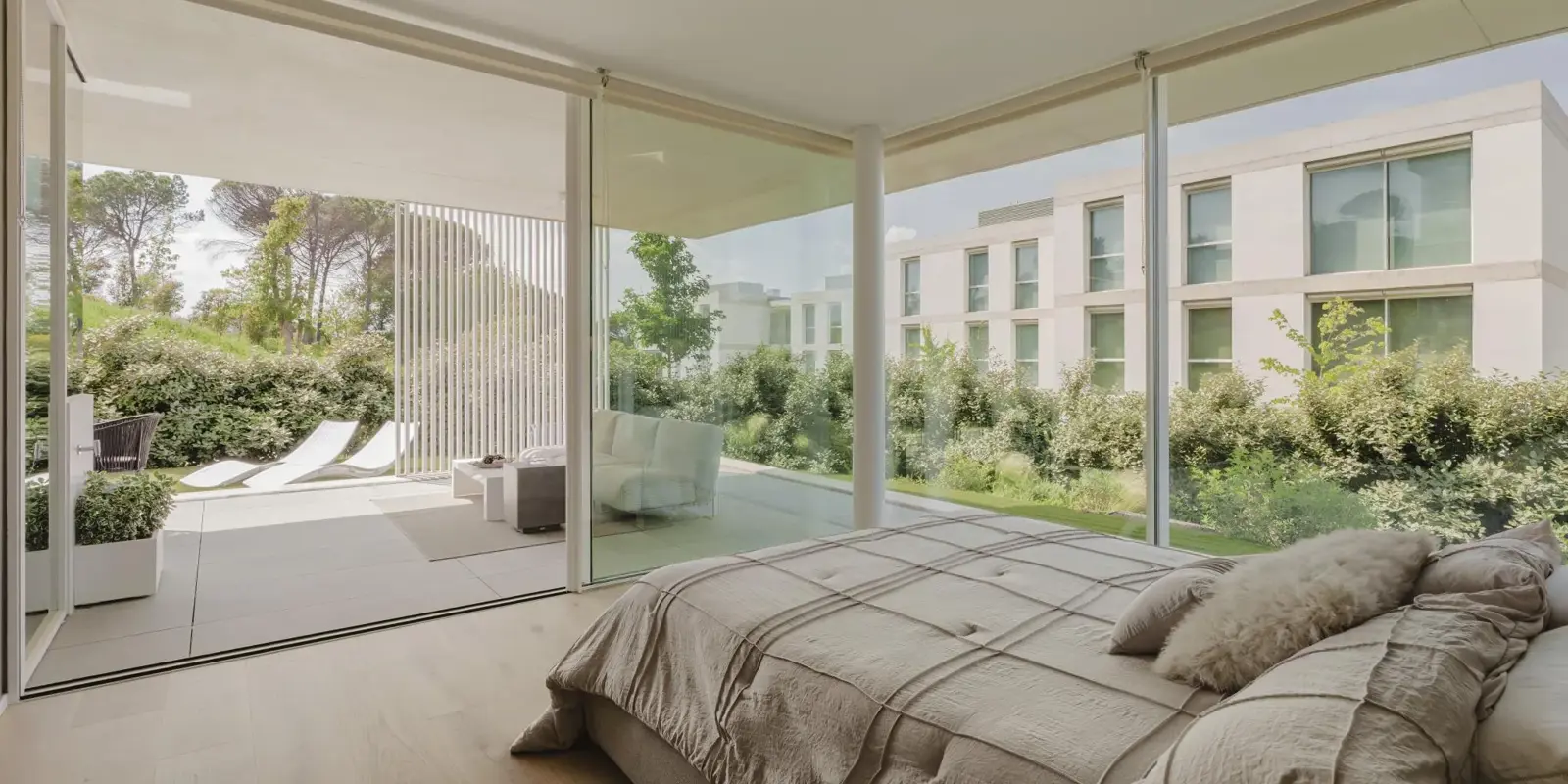 Designed by the renowned Barcelona-based firm Jaime Prous Architects, the apartment reflects a clean, contemporary aesthetic that blends harmoniously with its surroundings. It is sold fully furnished, with every detail carefully selected to complement the space.