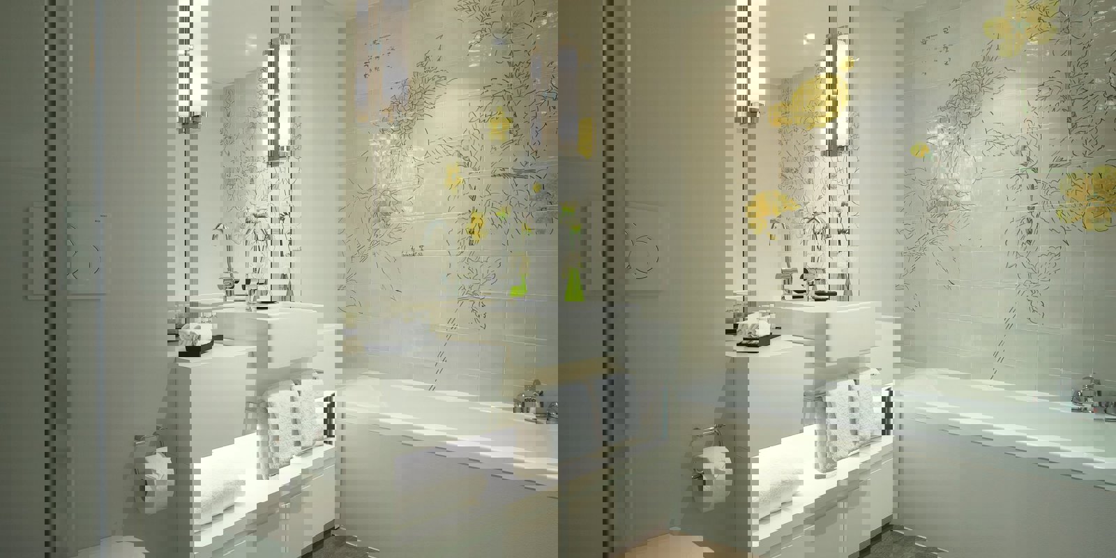 - Bañera y ducha de efecto lluvia independientes