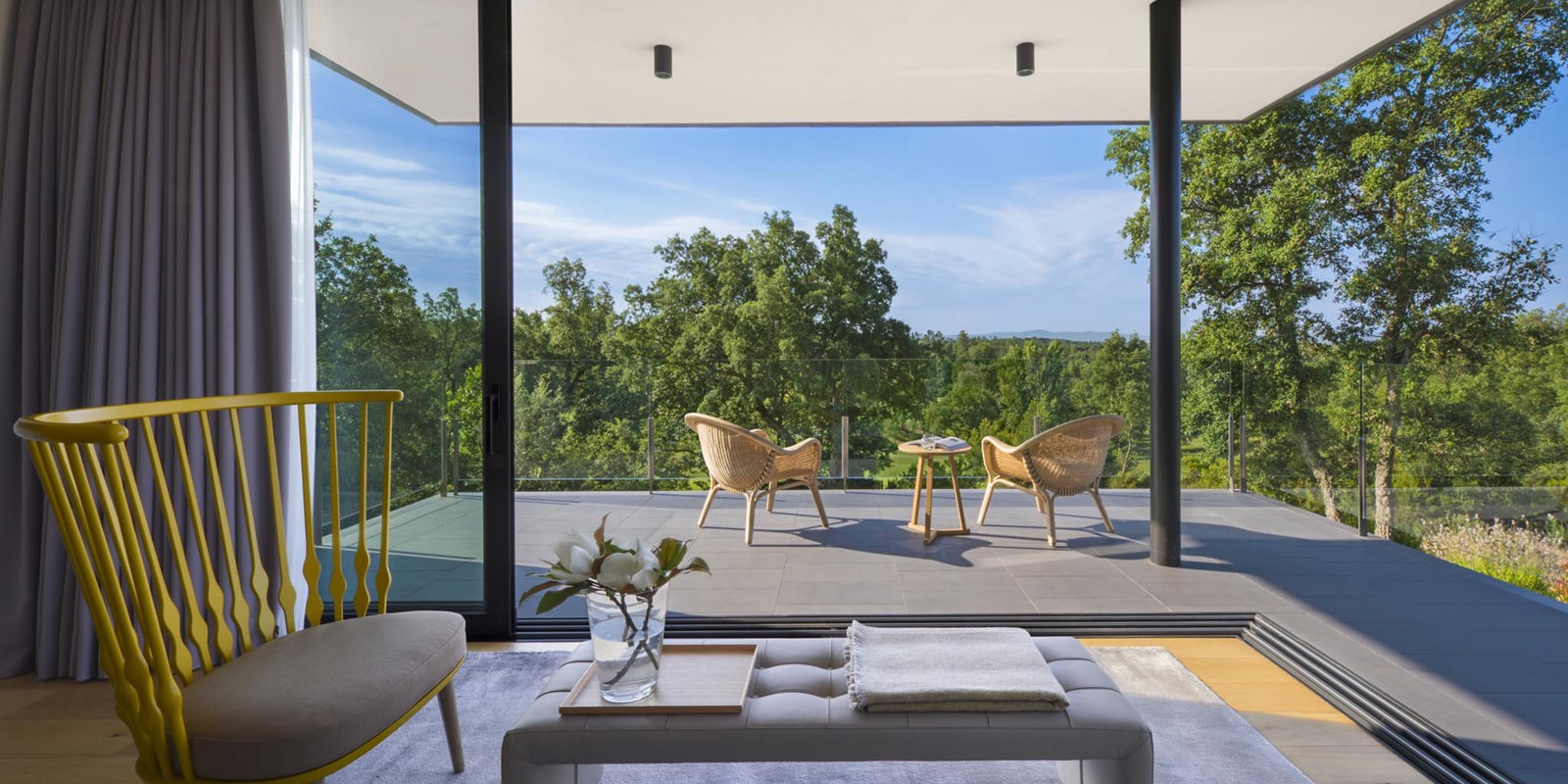 Dotées d’une vue exceptionnelle sur les parcours de golf, ces résidences familiales d’inspiration méditerranéenne ont été conçues pour se fondre harmonieusement dans leur environnement. Les grands espaces intérieurs lumineux font de l’architecture un élément totalement intégré du paysage.