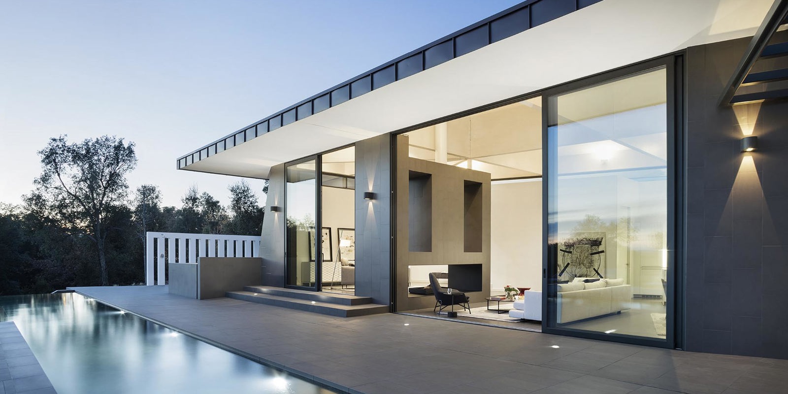 Les terrasses prolongent l’espace de vie intérieur en offrant un coin repas en plein air, un jardin privatif et une piscine à débordement qui permettent de partager des moments inoubliables en pleine nature toute l’année.